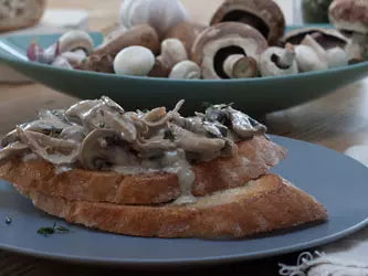 5. Once the bread is toasted spoon over the creamy chicken and mushrooms.Serve as it is or with a green salad.