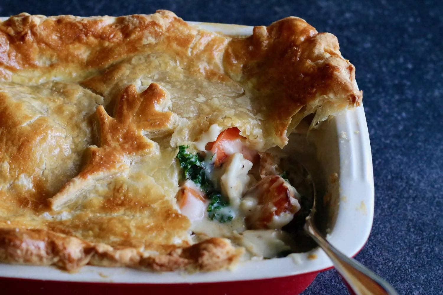 A celebration of all those delicious Christmas leftovers, smothered in a creamy white wine sauce and topped with crispy puff pastry. You can adapt the ingredients to suit whatever leftovers you have after the big day. The important bit is creating a silky smooth delicious sauce to cover the treasure that lies beneath. It’s the definition of comfort food and we hope you enjoy it as much as we do.